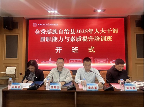 5月18日至5月23日,金秀瑶族自治县2025年人大干部履职能力与素质提升培训班在我校举办,金秀瑶族自治县人大常委会主任、党组书记苏敏忠、哈尔滨工业大学工会常务副主席兼党委联络工作办公室副主任喻庆勇出席开班式并讲话,金秀瑶族自治县人大常委会党组成员、副主任赵东渐、县人大常委会党组副书记、副主任赵群英出席开班式。来自广西的45名学员参加培训。